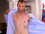 Lorenzo, un bo pompier mis à nu et branlé presque malgré lui.